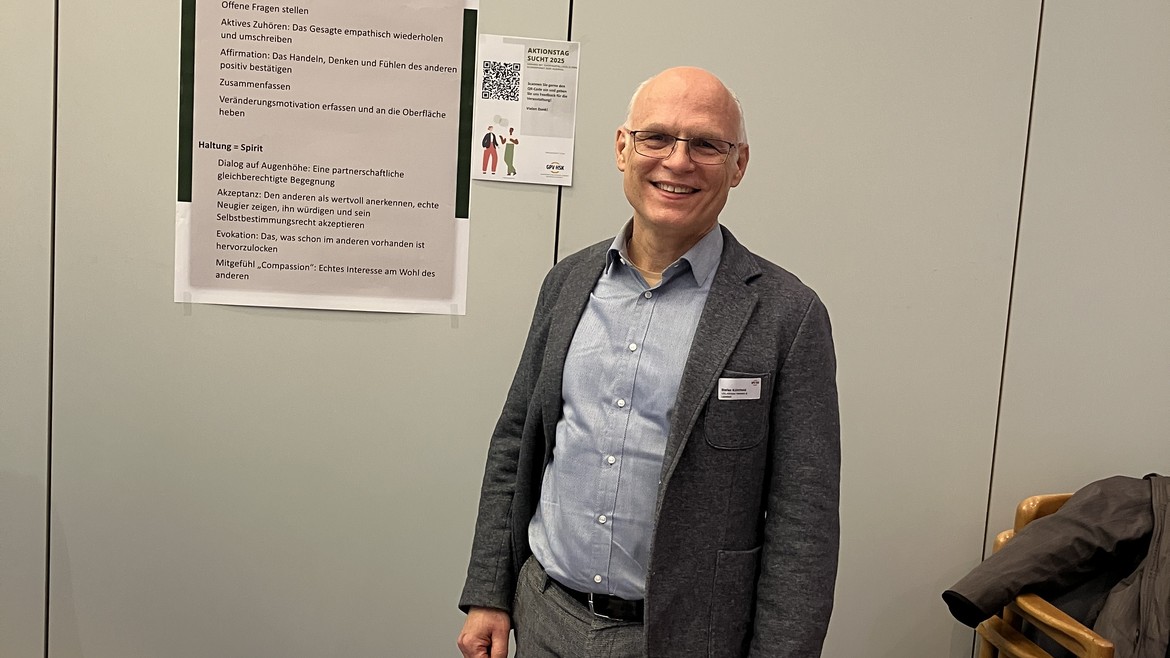 Stefan Kühnhold, unser Chefarzt im Zentrum für Suchtmedizin der LWL-Kliniken Warstein und Lippstadt sowie stellvertretender ärztlicher Direktor der LWL-Klinik Warstein, widmete sich in seinem Vortrag dem Thema Motivierende Gesprächsführung – einem kommunikativen Ansatz, der Fachkräften hilft, betroffene Eltern zu erreichen und Veränderungsprozesse anzustoßen. Die Motivierende Gesprächsführung zielt darauf ab, Menschen in ihrer eigenen Motivation zu stärken, statt sie mit Argumenten zu überzeugen. Sie setzt auf Empathie, Wertschätzung und partnerschaftlichen Dialog – damit Betroffene selbst entdecken, warum und wie sie ihr Verhalten ändern möchten.