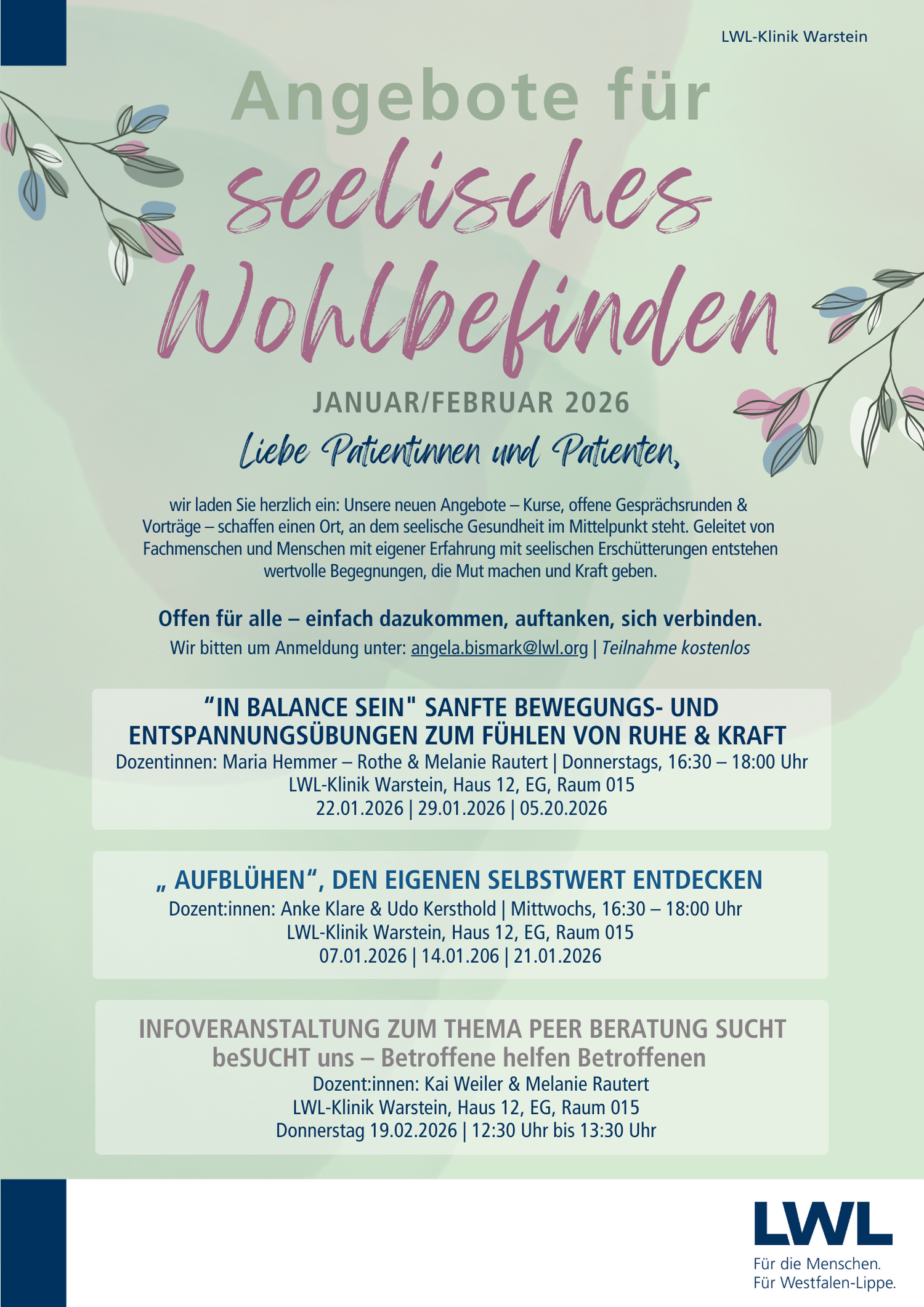 Anmeldung bitte per E-Mail an: angela.bismark@lwl.org